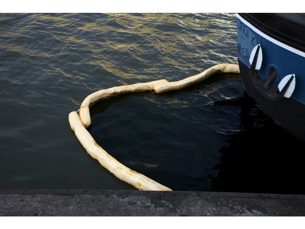• vytvára bariéru na vodnej hladine, ktorá zabraňuje rozširovaniu úniku nebezpečnej látky a zároveň ju na seba viaže
