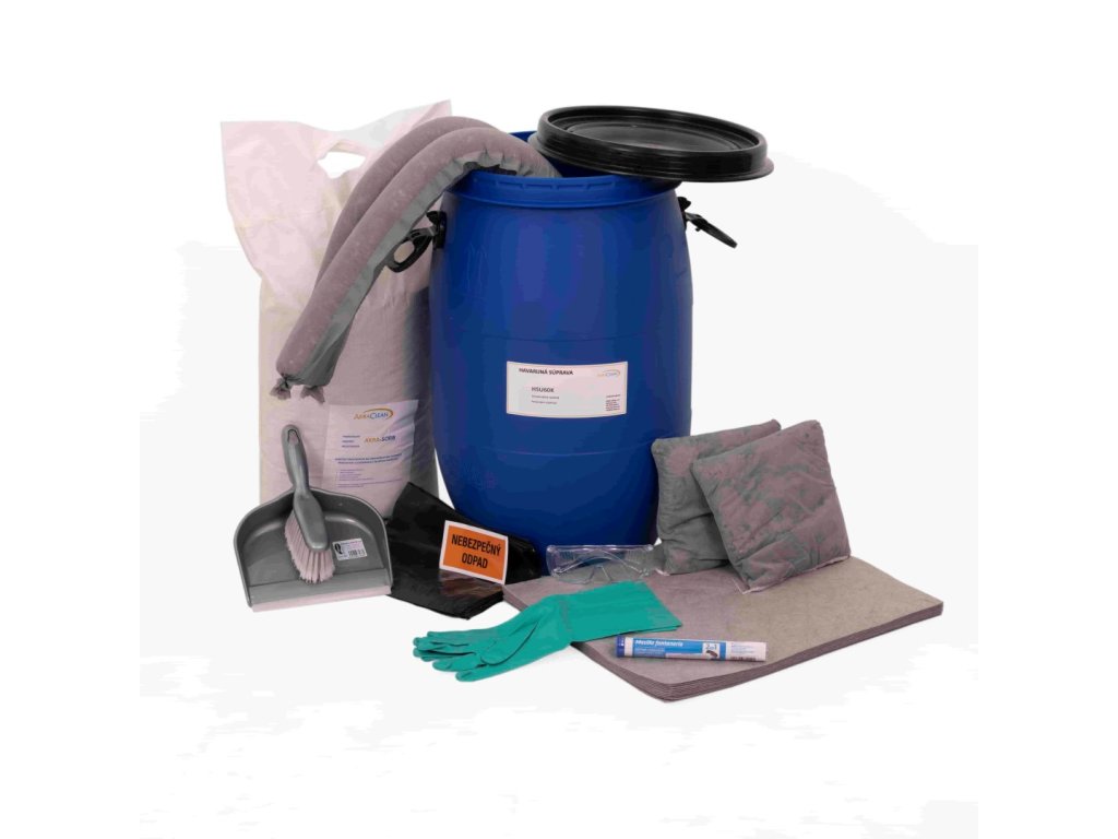 • zloženie súpravy: sypký sorbent, 10x sorpčná rohož, 2x sorpčný had, 2x sorpčný vankúš, tesniaci tmel, rukavice, ochranné okuliare, lopatka s metličkou, vrecia na použitý odpad, označenie vriec s odpadom